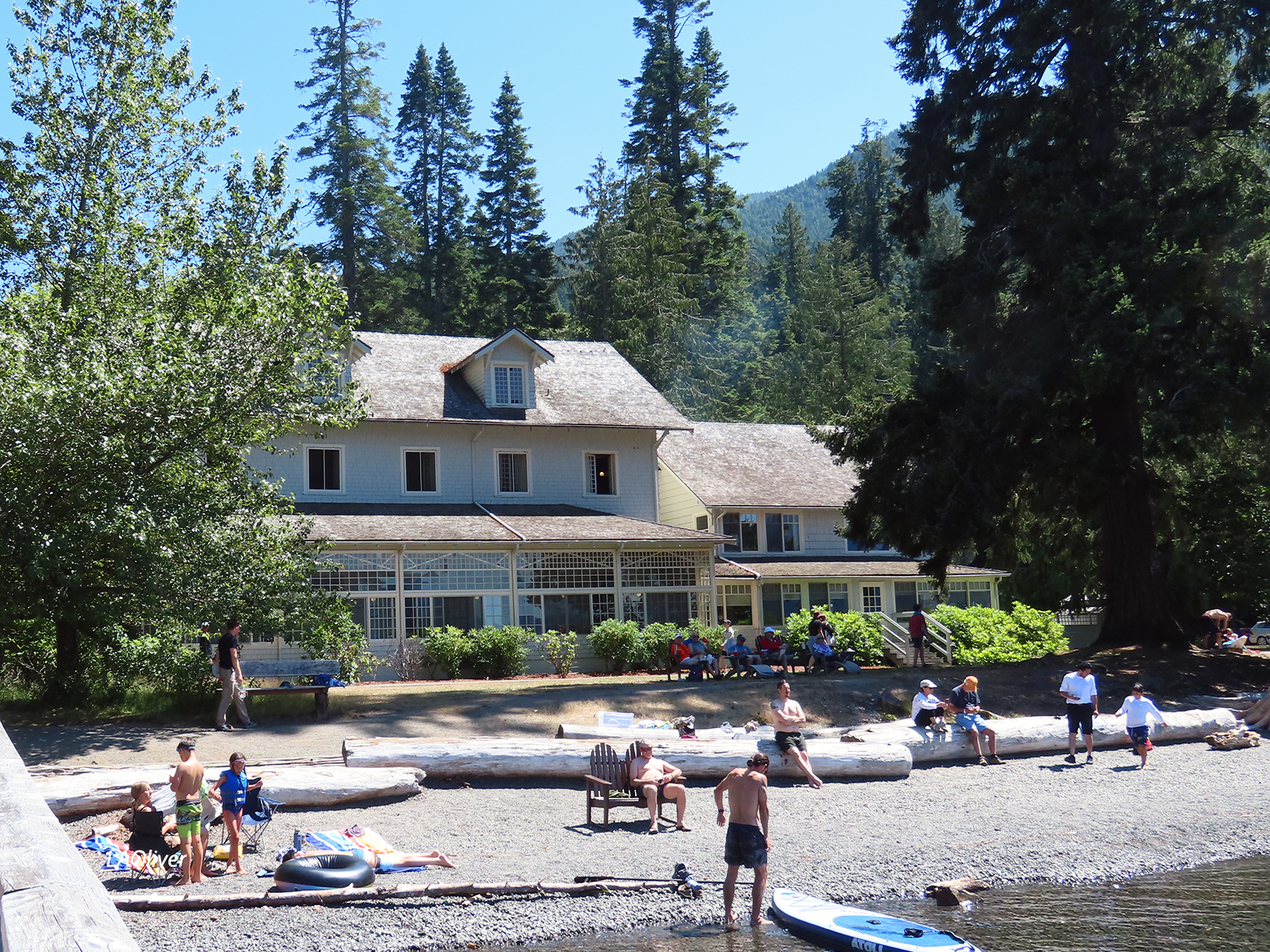 Lake Crescent Lodge. Plenty of beachgoers, and you don’t have to be a guest at the Lodge to access the beach.