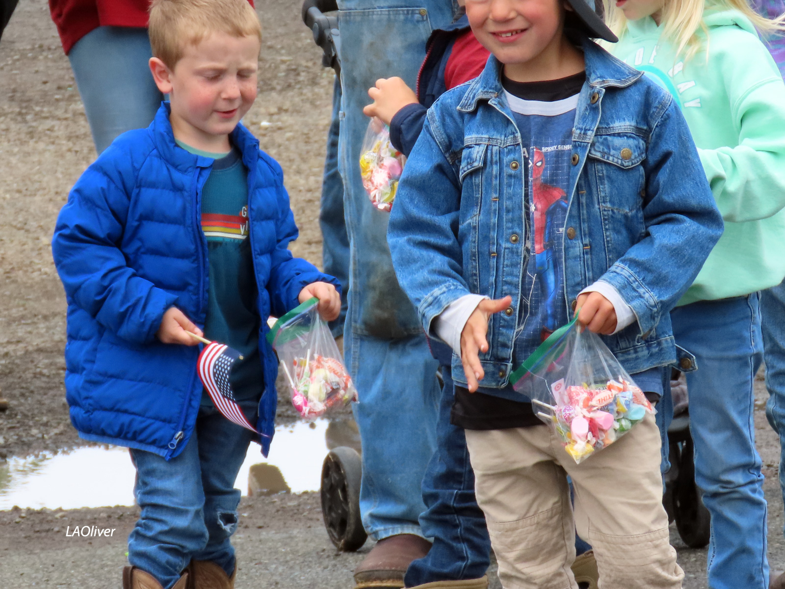 I managed a few one-handed snaps as we walked. So many cute kids, so much red-white-and-blue, and so many candy bandits!