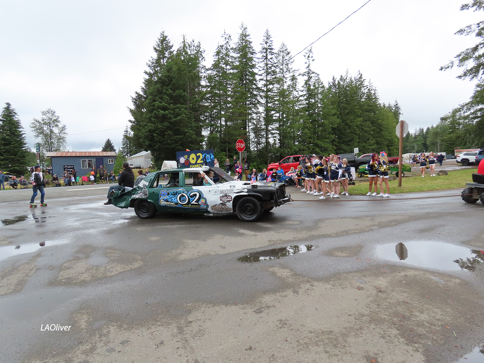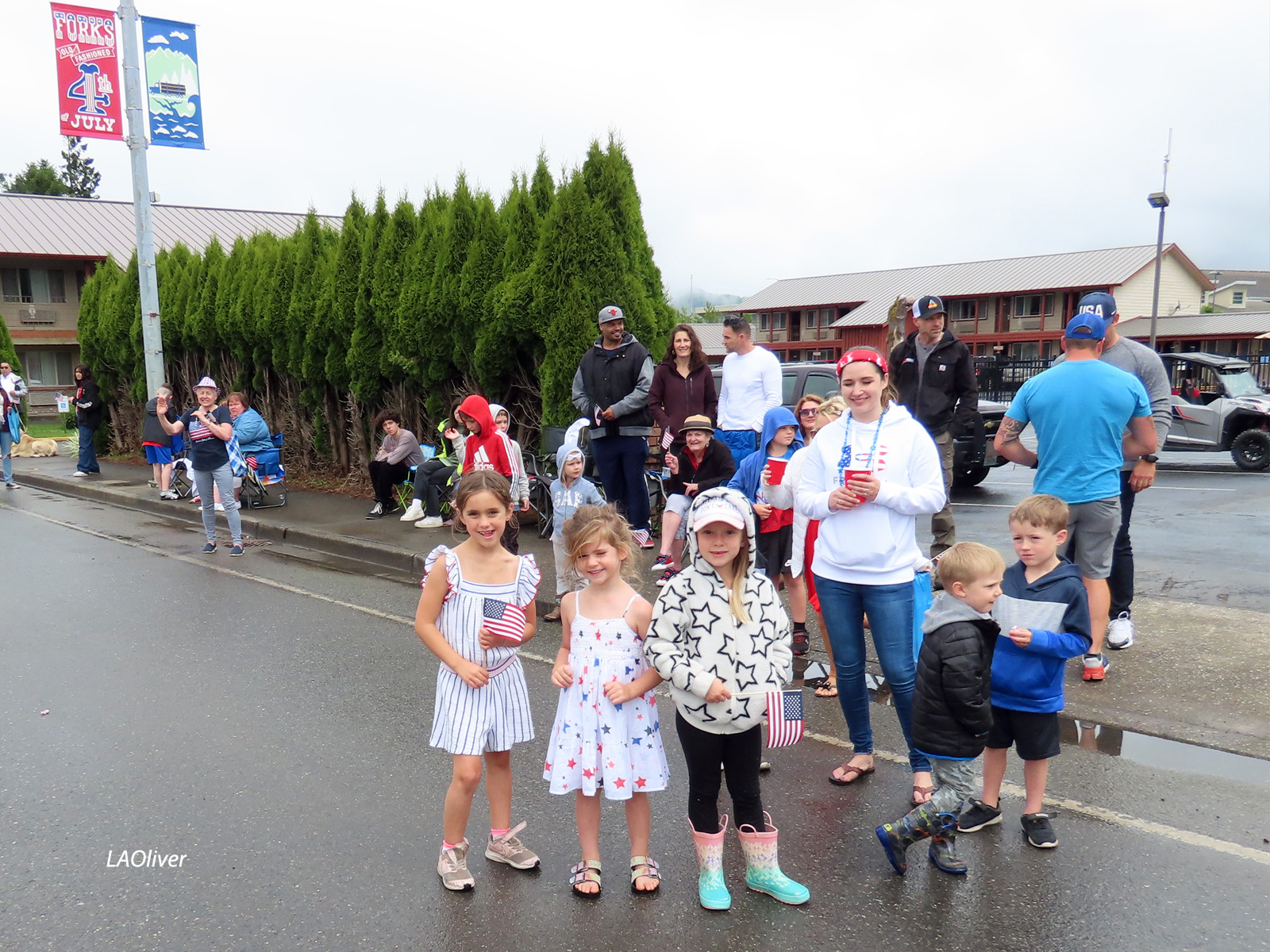The organized chaos of the staging area. 10 minutes before the parade, Forks is living up to its billing as the rainiest city in the contiguous United States!