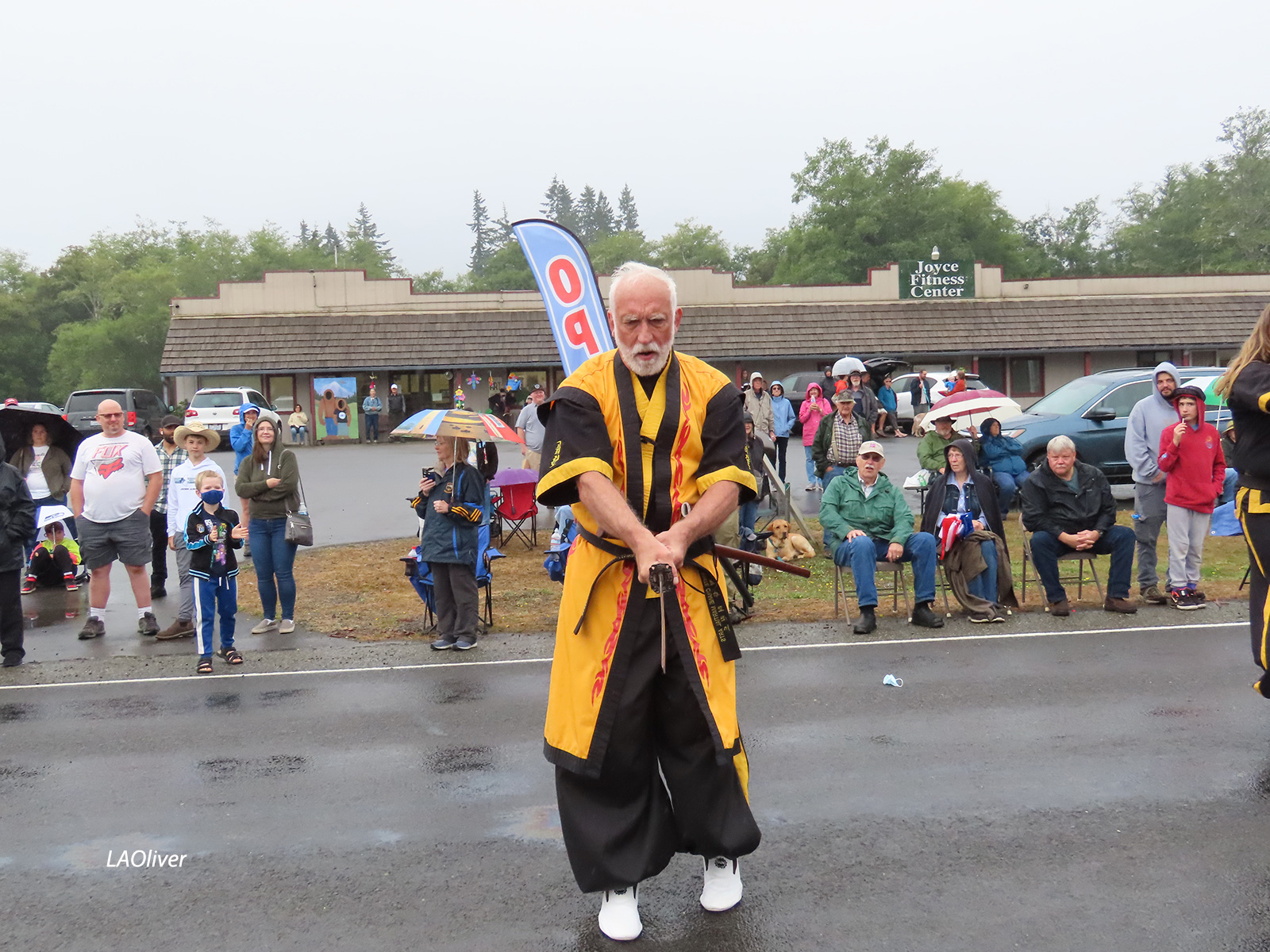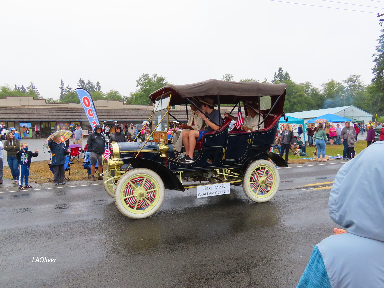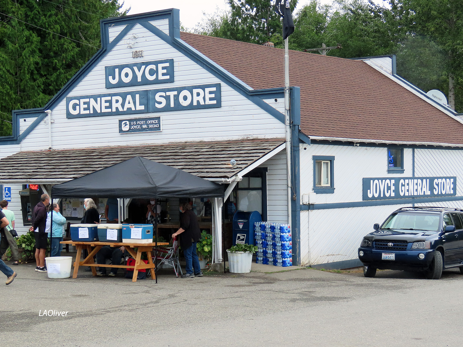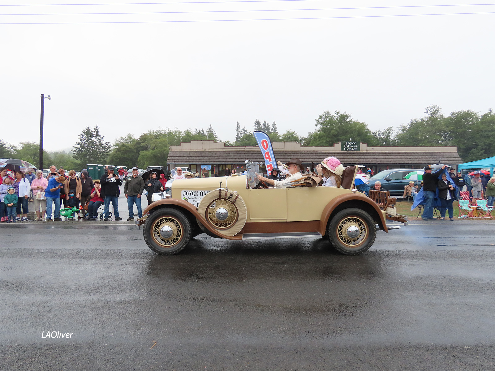 The Joyce General Store, where I stood by the gas pumps, under cover, drying off my camera lense before the start of the parade.