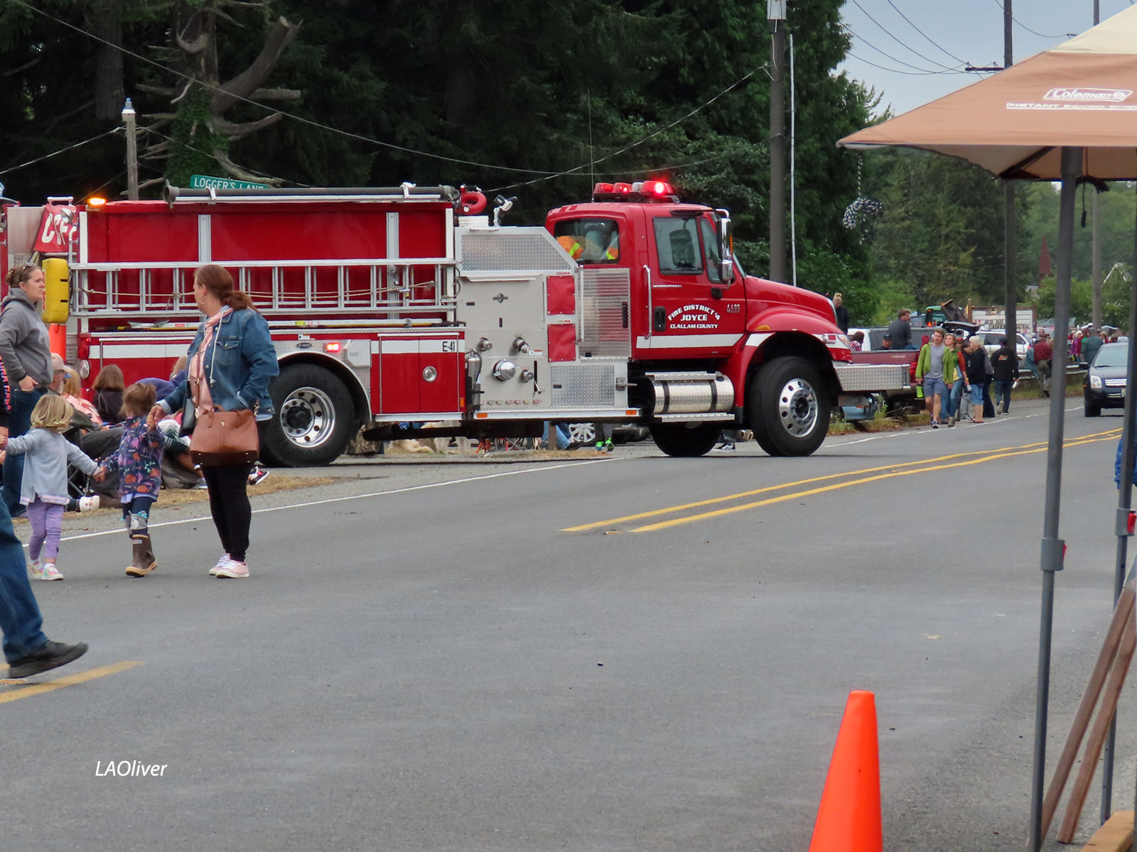 A bit before 1pm, the fire engine sirens blared, the fire trucks headed out, and the M.C. for the festival let us know that the parade was forming up.