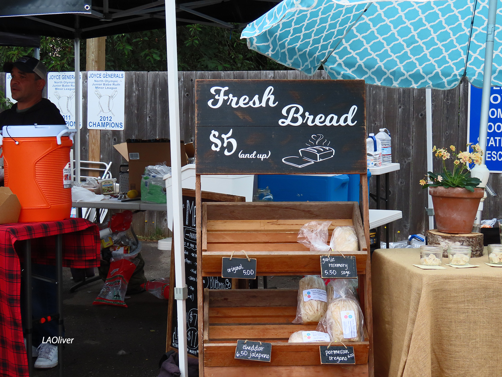 Yup, I’m in the right place. Parking is in a big field, which today was a bit muddy, and my car definitely needs a wash now. It was dry when I left Sequim, but by the time I got to Joyce, a light drizzle and then rain had moved in. Walking across the field back to the festival, I really should have worn closed-toed shoes, not my sandals.