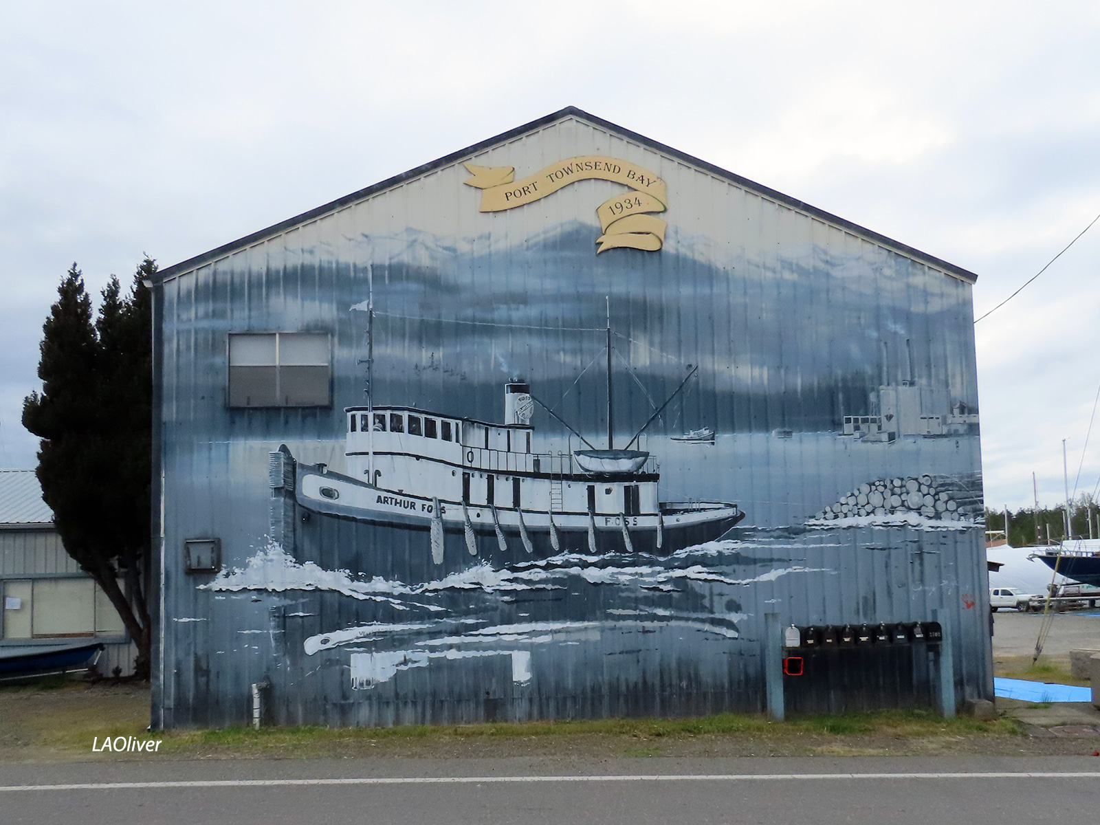 Mural of the tug Arthur Foss, built in 1889 and the oldest still floating wooden tugboat in the world. I think I’ll have to head over to the Historic Ships Wharf at Seattle’s Lake Union Park to photograph the real thing.